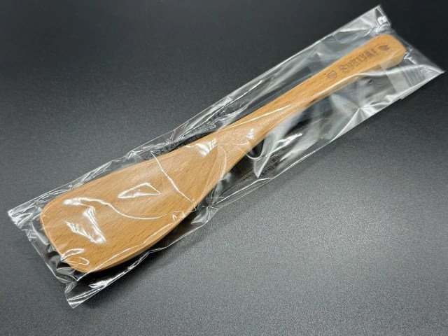 The Sukiya Original Wooden Multi-Spoon is a natural wood spoon made from beech, the end of which is flattened to help you scoop out all of those rice grains from the bottom of your beef bowl.