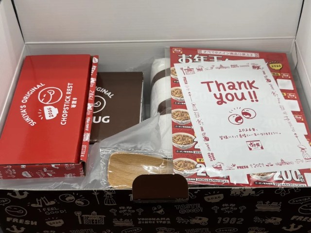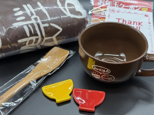 Every New Year in Japan, lucky bags (“fukubukuro”) appear everywhere, often with some great deals. We always like to keep an eye on some of our most frequently visited establishments to see what offers they have in store for us every year. For a few years now, our Japanese-language reporter Saya Togashi has been snapping up a lucky bag from the nationwide beef bowl chain Sukiya, who wants everyone to ring in the New Year with a smile.
