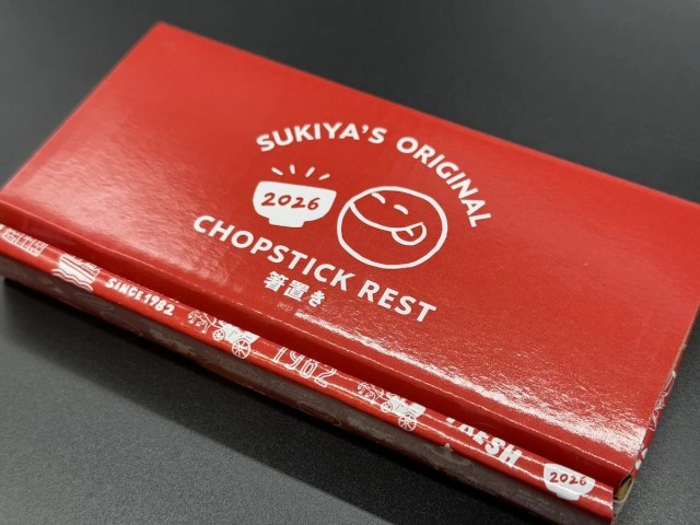 The online-exclusive Sukiya Original Donburi Chopstick Rests come as a vivid red and yellow pair.