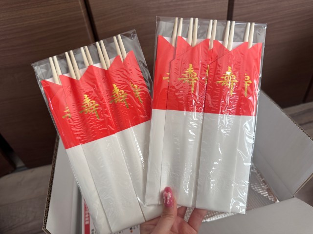She opened the box and was greeted by the usual packs of chopsticks waiting at the top.
