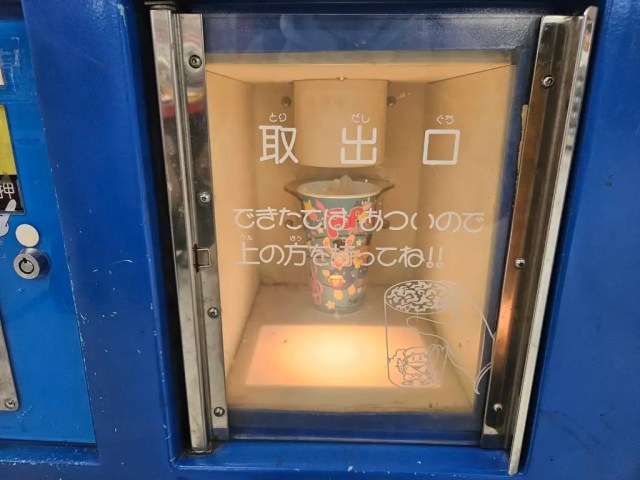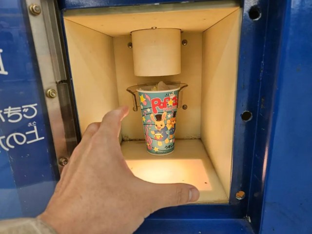 Now, hours after he’d originally gotten the urge to, Takuya could finally slide two hundred-yen coins into the slot. After pressing the button to choose his flavor, the same melody he’d heard so many times as a kid began playing from the machine’s speakers, and Jajamaru began chanting his ninja magic incantation of “Oishiku naare, popukoon!” (“Become delicious, popcorn!”).