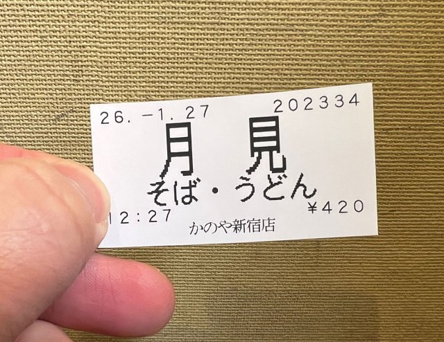 ▼ Day 3: Tsukimi Udon (420 yen) at Shinjuku Kanoya, Main Branch