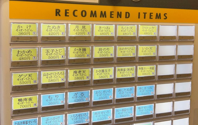 Here, you can get a bowl of Tsukimi (Moon Viewing) soba or udon, so-called as it contains an egg, which has a round shape that resembles the moon, for just 420 yen.