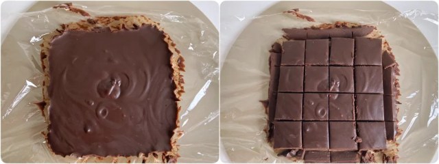 Put the container in the refrigerator for two hours to cool and harden. After that, using a lightly warmed knife (for a cleaner cut), slice the nama chocolate into bite-sized pieces.