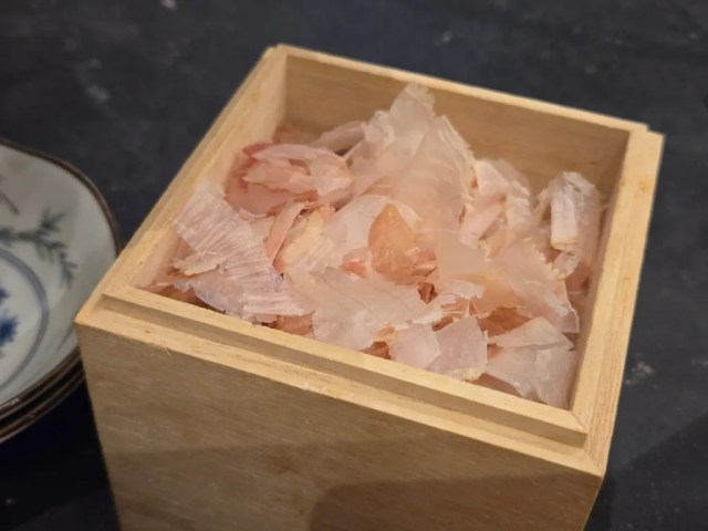 The rice is a special kind, carefully selected by a long-established Kyoto rice merchant for its gently sweet flavor and texture, fluffy without being sticky. Dashihayashi serves their rice first because they’re proud of its quality and want you to enjoy some even before getting to the other flavors in your set meal, and so we selected an egg from the plate, cracked it onto the rice, and sprinkled on some bonito flakes.