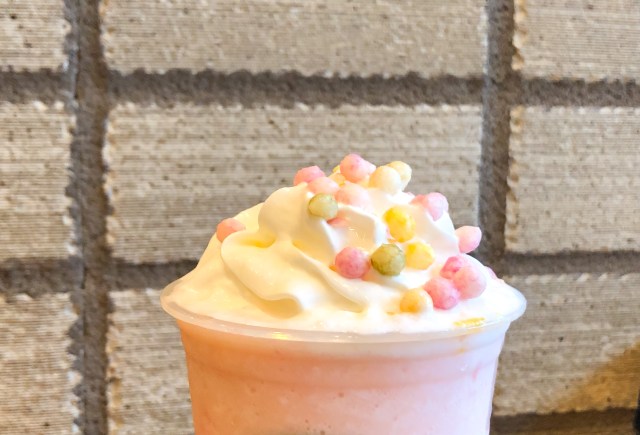 As you can see in the photo above, this little drink makes the straw look gigantic, and that’s because it’s only available in a Short size. With other limited-time Frappuccinos on the menu being sold in Tall sizes only, this is our first time ever seeing a Frappuccino so small, and it’s designed to be that way so that young girls can enjoy them.