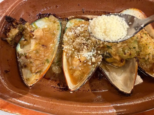 ▼ … and the Grilled Mussels with Vegetable Salsa (400 yen).