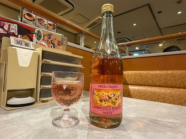 ▼ Since that’s the case, splurge and go for a whole bottle of Lambrusco Rosé, at a stunning price of 1,000 yen.