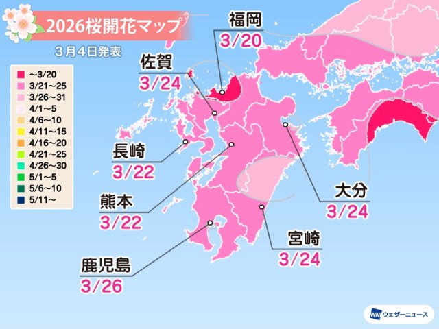 And if you’re planning to head to somewhere not on the above list of sakura sightseeing hotspots, Weathernews has localized predictions for areas all across the country. With the general trend being that sakura bloom first in the southern and western part of Japan before making their way to the east and north, let’s start by looking at the forecasts for the southwestern island of Kyushu, then follow the projected sakura front as it advances towards Hokkaido.