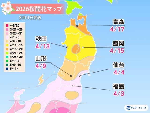 Sendai (仙台): April 4 (1 day earlier)