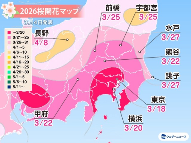 As we get closer to the flowers’ opening, the predications get refined and updated, and Weathernews has now released its latest revision, one which moves the blooming of the cherry blossoms in Tokyo up three whole days compared to the last forecast, to March 18.