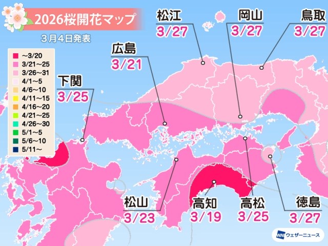 Hiroshima (広島): March 21 (1 day earlier than previous forecast)
