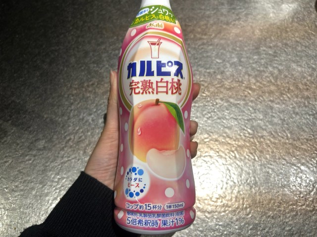 ▼ It was so good that we dared to try it with the peach-flavoured Calpis as well.