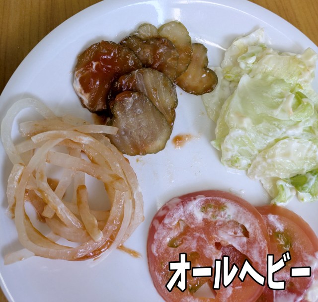 This revealed that the All Heavy actually contained more of some ingredients – although the lettuce was sorely lacking, it had more onion rings and more pickles.