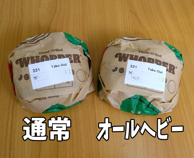 ▼ Regular Whopper on the left, All Heavy version on the right.
