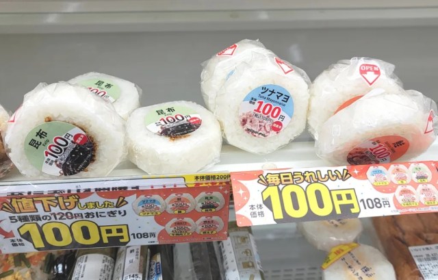 There’s perhaps no better example of the frustrating inflation that’s taking place in Japan than what’s happened to convenience store onigiri (rice balls). It wasn’t all that long ago that you could get simple varieties for not all that much more than 100 yen (US$0.65), but they’ve become pretty much impossible to find at that price point. Even at Lawson Store 100, the budget-friendly sub-brand of the Lawson convenience store chain where most items are priced at 100 yen, onigiri prices had been raised to start at 120 yen.