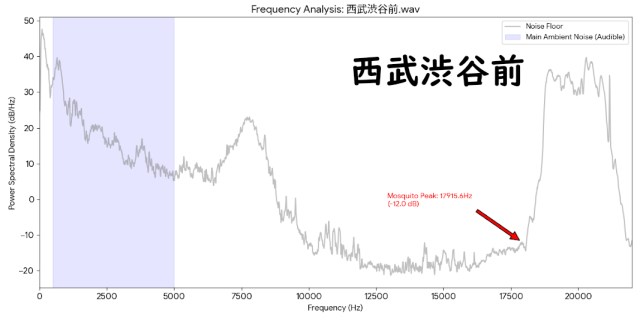 This may have been due to the sound reflecting and amplifying between the two buildings around Seibu Shibuya, making it more noticeable there than in other areas. But there may be another reason for the noise – frequencies of around 17 kHz to 18 kHz are used to deter pests such as rats.