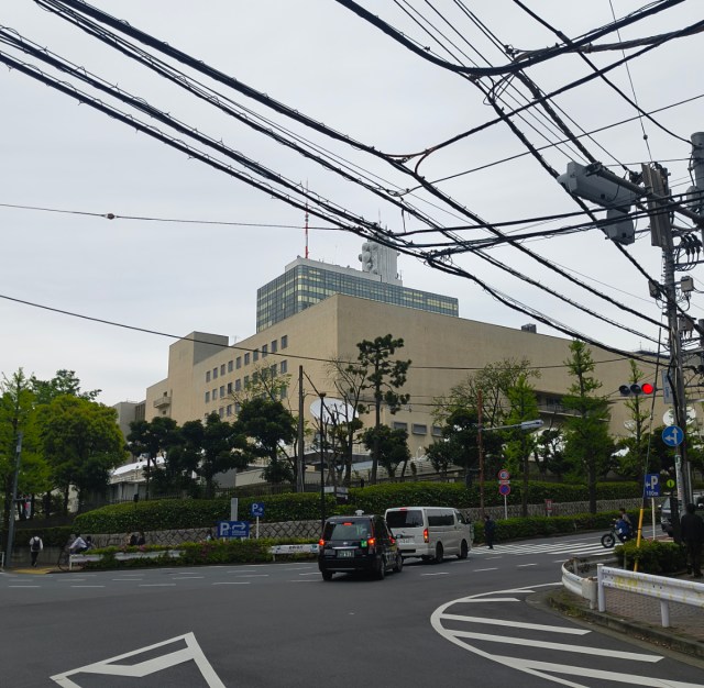 Now he was far away from the station, and in a relatively quieter area of the neighbourhood too, in front of the NHK Broadcasting Center.